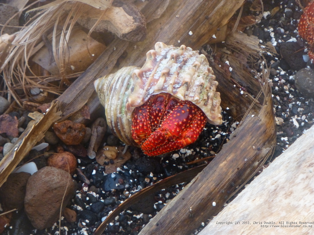 This area of Pitcairn had the only sandy beach that I saw on the island. The other areas were pretty rocky. There were the usual Pitcairn crabs that I'd seen down Tedside while fishing, but also a type of crab that lives in a shell which I hadn't seen before.